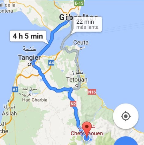 Entro en el barco y una pareja de portugueses me ata la moto. Una vez subo a la planta de arriba me doy cuenta de que soy el único europeo. Me sellan el pasaporte y subo a cubierta para ver el estrecho. Es curioso, no es la primera vez que lo veo pero esta vez me parece mas pequeño que antes. La otra vez lo vi desde el aire cuando visité Marrakech con mi madre en 2014. Es como si estos 14km de agua que separan Europa de África hubieran encogido desde la última vez.