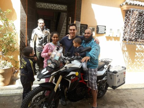 Llegamos a casa a comer y la.familia ha preparado una gran comida de despedida. Parece que marchamos a dar la vuelta al mundo cuando en realidad el Sáhara tan solo se encuentra a unos escasos 500km al sur de Rabat. Hoy viajaremos a Meknés – me niego a usar la palabra Merquínez – donde nos espera la familia de Mohamed y Ayoud.